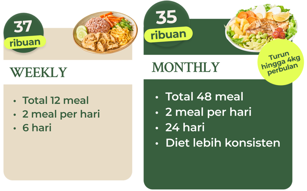 Siap mulai diet? Pilih Monthly untuk hasil yang lebih konsisten, atau Weekly kalau mau coba dulu.